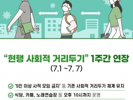 7월 7일까지 1주간 현행 사회적 거리두기 연장